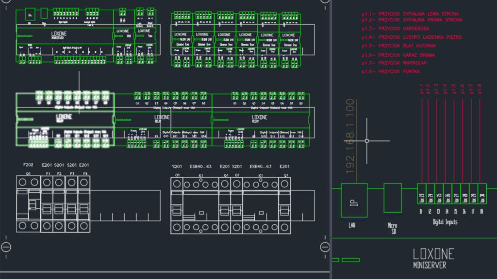 Firma Great Automation przygotuje kompleksowy projekt instalacji pod automatykę Loxone lub KNX. Dostarczymy szczegółowe wytyczne dotyczące okablowania oraz sposobu opisywania przewodów, aby zapewnić maksymalną przejrzystość i łatwość w przyszłej obsłudze systemu.